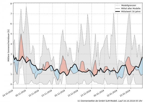Unsere aktuellen Langfristprognosen für Lufttemperatur, Sonnenscheindauer und Niederschlagshöhe.