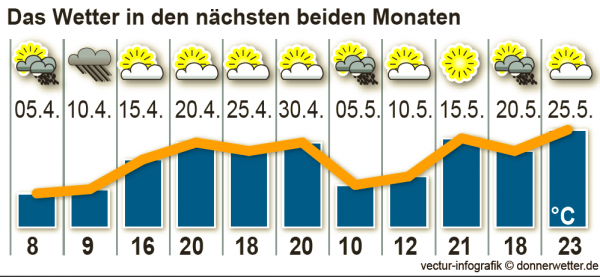 Wechselhaft starten wir in diesem Jahr in den April. Mit einsetzendem Hochdruckwetter beschert der nächste Monat uns in seinem Verlauf aber trotzdem die ein oder andere freundliche und vor allem trockene Stunde. In seiner Temperaturtendenz wird der April dann normal oder leicht zu mild ausfallen.