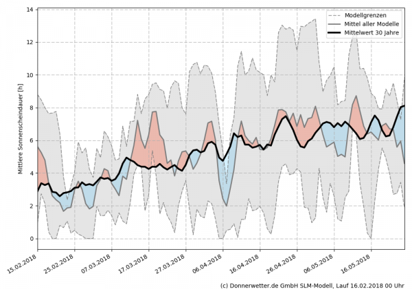 Unsere aktuellen Langfristprognosen für Lufttemperatur, Sonnenscheindauer und Niederschlagshöhe.