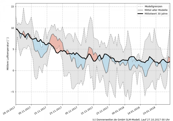 Die nächste Zeit wird herbsttypisch frisch im Westen. Eine dauerhaftere positive Abweichung der mittleren Lufttemperaturen zum langjährigen Durchschnitt kündigt sich erst wieder in der zweiten Novemberhälfte an. Dann sind auch wieder längere sonnige Abschnitte zu erwarten. In den Wochen danach dominieren häufig unterdurchschnittliche Temperaturen, dafür fällt insgesamt weniger Niederschlag als üblich.
