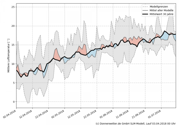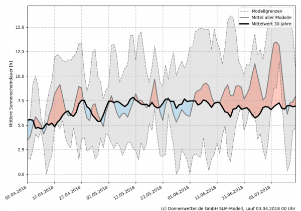 Unsere aktuellen Langfristprognosen für Lufttemperatur, Sonnenscheindauer und Niederschlagshöhe.