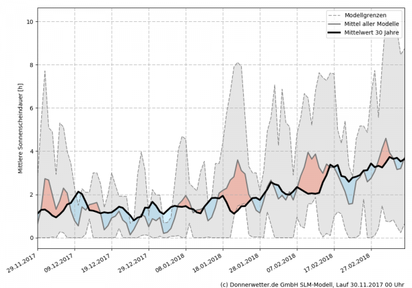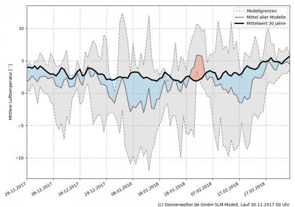 Vor allem die zu erwartenden Temperaturen sprechen laut aktueller Modellrechnungen im Westen eine eindeutige Sprache: Die nächsten Wochen werden deutlich zu kühl. Die insgesamt freudlichste Wetterphasen ist aller Voraussicht nach für die erste Dezemberdekade zu erwarten.