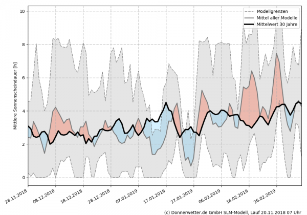 Unsere aktuellen Langfristprognosen für Lufttemperatur, Sonnenscheindauer und Niederschlagshöhe.