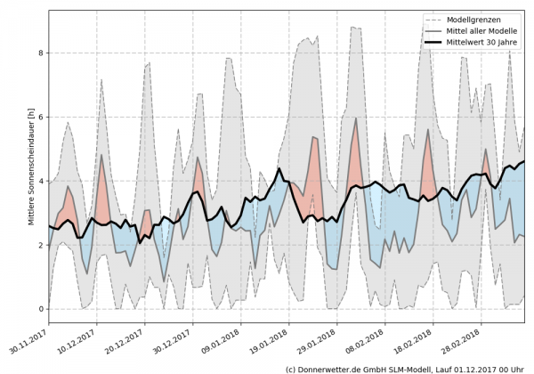 Unsere aktuellen Trendprognosen für Lufttemperatur, Sonnenscheindauer und Niederschlagshöhe.