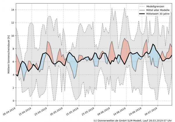 Unsere aktuellen Langfristprognosen für Lufttemperatur, Sonnenscheindauer und Niederschlagshöhe.