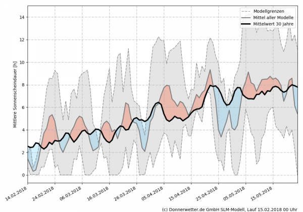 Unsere aktuellen Langfristprognosen für Lufttemperatur, Sonnenscheindauer und Niederschlagshöhe.