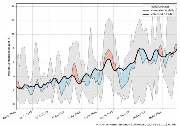 Unsere aktuellen Langfristprognosen für Lufttemperatur, Sonnenscheindauer und Niederschlagshöhe.