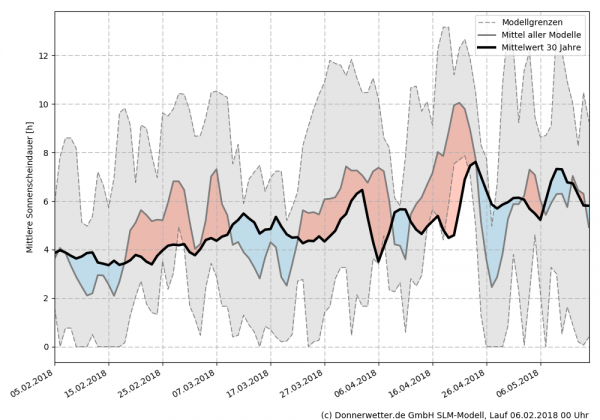 Unsere aktuellen Langfristprognosen für Lufttemperatur, Sonnenscheindauer und Niederschlagshöhe.