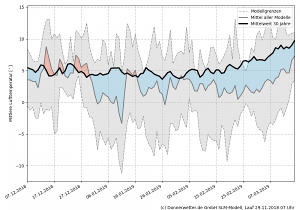 Der Westen verabschiedet das Jahr mit insgesamt durchschnittlichen mittleren Lufttemperaturen, nennenswerte Niederschläge sind in den letzten vier Wochen des alten Jahres aber weiterhin nicht zu erwarten. Im Gegenteil, es bleibt sehr trocken. Die meisten sonnigen Phasen finden wir um die Monatsmitte Dezember herum.