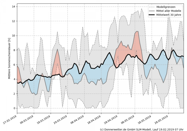 Unsere aktuellen Langfristprognosen für Lufttemperatur, Sonnenscheindauer und Niederschlagshöhe.