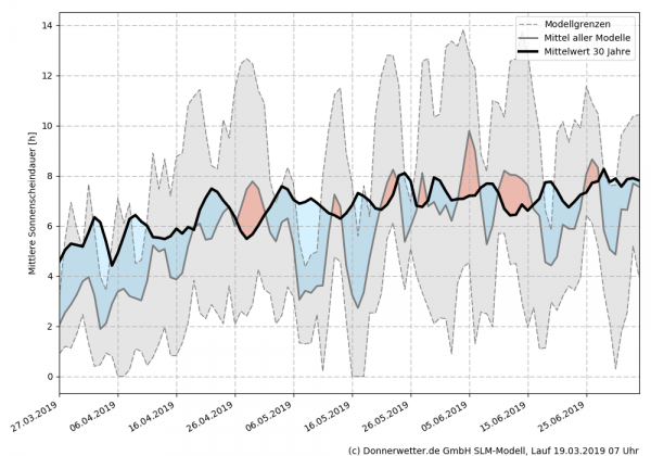 Unsere aktuellen Langfristprognosen für Lufttemperatur, Sonnenscheindauer und Niederschlagshöhe.