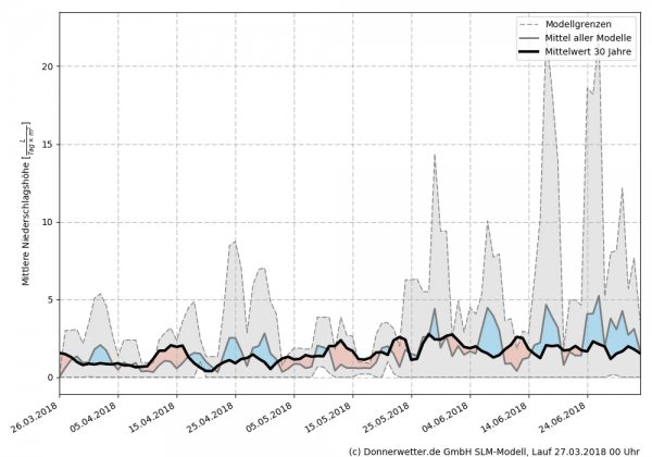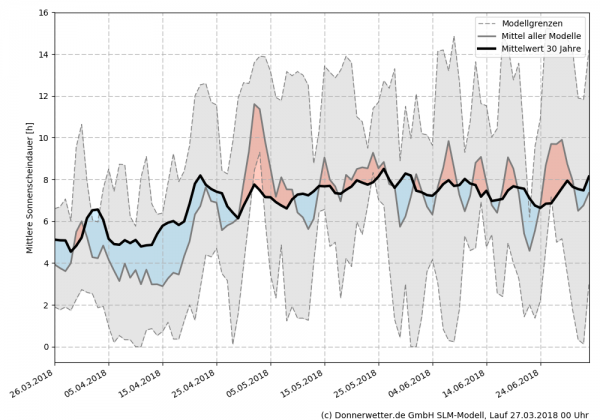 Unsere aktuellen Langfristprognosen für Lufttemperatur, Sonnenscheindauer und Niederschlagshöhe.