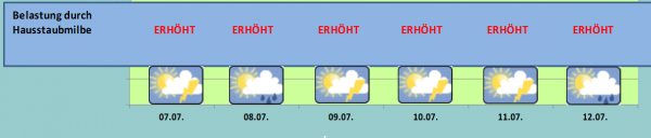 Bei zeitweiligen Schauern und Gewittern sind Allergiker in den kommenden Tagen recht hohen Hausstaubbelastungen ausgesetzt.