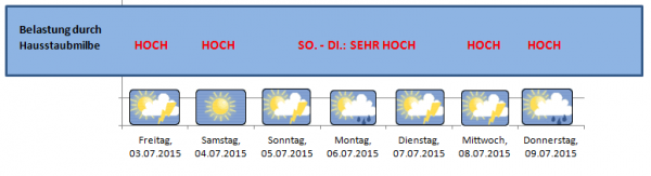 Das heiße und am Wochenende sowie zu Beginn der neuen Woche teils gewittrige und feuchte Wetter bietet Hausstaubmilben nun perfekte Lebensbedingungen.