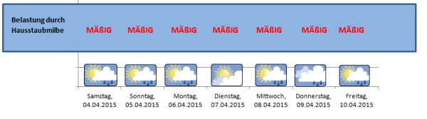 Die Feuchtigkeit in unseren Innenräumen steigt bei falscher oder ausbleibender Lüftung an, Hausstauballergiker haben nun verstärkt mit Symptomen zu rechnen. Derzeit ist die Belastung als mäßig einzustufen.