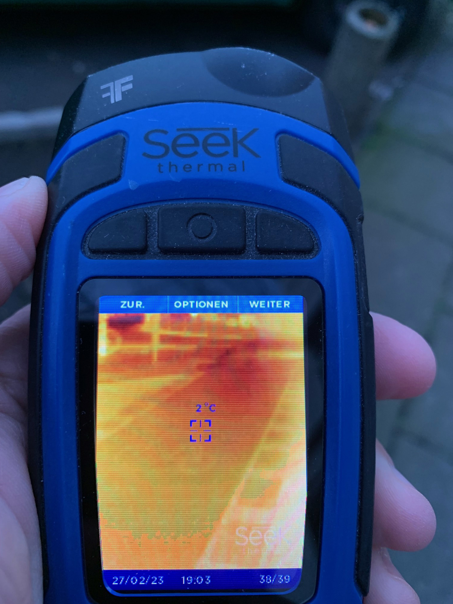 Das Team des Wetterdienstes Donnerwetter.de hat in diesem Winter an mehreren kalten Tagen die Oberflächentemperaturen in städtischen Bereichen gemessen. Bei wolkenlosem Himmel lag die Temperatur des Straßenasphalts je nach Lage der Straße meist 2 Grad unter der Lufttemperatur. Soweit für die Meteorologen noch keine Überraschung. Dass sich Oberflächen bei klarem Himmel durch die Wärmeabstrahlung schneller und stärker abkühlen als die Luft darüber, ist ein bekanntes Phänomen. Dadurch bildet sich zum Beispiel auf Auto-Windschutzscheiben in den Nächten Reif.