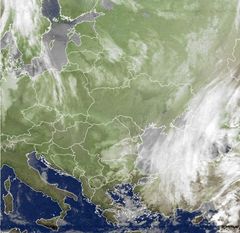 Satellitenbild: Tief im Norden, Hoch im Süden