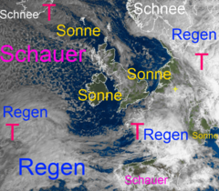 Regen- und Schneewolken über Mitteleuropa