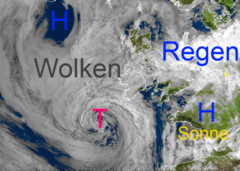 Klassischer Wolkenwirbel über dem Atlantik