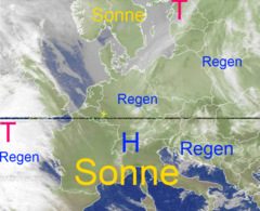 Luftmassengrenze über der Südhälfte