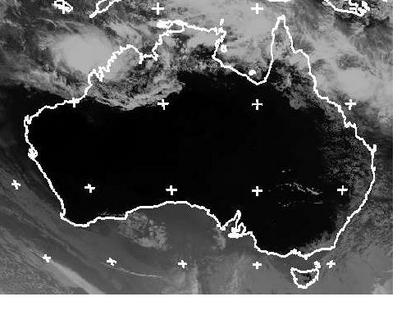 Auf dem Satellitenbild von Samstag früh sind weite Teile des australischen Kontinents nahezu wolkenfrei. Lediglich im Norden und Nordosten sind dichtere Schauer- und Gewitterwolken zu erkennen. (Bildquelle: NERC Satellite Receiving Station, Dundee University, Scotland, http://www.sat.dundee.ac.uk/)