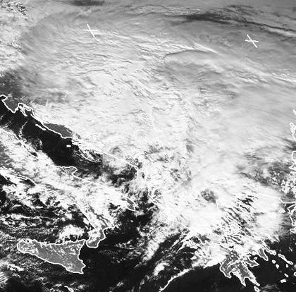 Am Donnerstag Mittag bringt Tief 'Xenos' der kompletten Balkan-Region dichte Wolken und damit verbunden Regen, teils auch Gewitter und Wind. Wolkenlücken zeigen sich vor allem über der Adria und dem Mittelmeer. Über Südost-Italien dagegen halten sich wieder viele Wolken, auch hier ist das Wetter wechselhaft. Außen vor bleibt jedoch Sizilien, wo sich nur wenige Wolken befinden. (Bildquelle: NERC Satellite Receiving Station, Dundee University, Scotland, http://www.sat.dundee.ac.uk/)