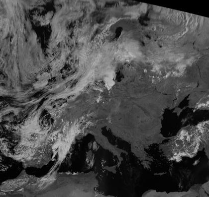 Auf dem heutigen Satellitenbild von Europa ist zu erkennen, dass der Balkan und der Raum um das Schwarze Meer unter Hochdruckeinfluss wolkenfrei sind. Tief 'Doris' sorgt in West- und Nordeuropa weiterhin für dichte Wolken.