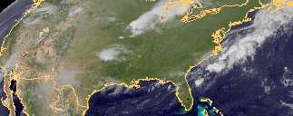 Auf dem heutigen Satellitenbild zeigen sich die USA weitgehend heiter mit nur gebietsweise dichter Bewölkung und etwas Regen. Im Bereich der Ostküste ist es dagegen durch atlantische Tiefausläufer zum Teil dicht bewölkt und es kann örtlich zu teils kräftigen Schauern oder Gewittern kommen. Der Schwerpunkt der Unwetter verharrt dabei aber auf dem Atlantik.