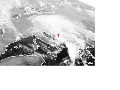 Ein Tief über dem Balkan sorgt von Italien bis zum Schwarzen Meer für Regen, teils auch für Gewitter. Seine Ausläufer reichen bis in den Süden und Osten Deutschlands und bringen auch hier etwas Regen. Sonst bleibt es unter Hochdruckeinfluss meist freundlich und trocken. (Bildquelle: NERC Satellite Receiving Station, Dundee University, Scotland, http://www.sat.dundee.ac.uk/)