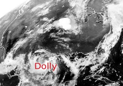 Der ehemalige Hurrican 'Dolly' hat sich in der Nacht zum Donnerstag zu einem Sturmtief abgeschwächt und bewegt sich gegenwärtig mit durchschnittlichen Windgeschwindigkeiten um 90 km/h, in Böen bis 120 km/h weiter nach Westen über den Norden von Mexiko. Allerdings bringt er immer noch teils ergiebige Niederschlagsmengen mit verbreitet über 100 Liter pro Quadratmeter mit sich.