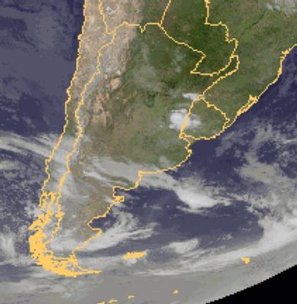 Über der Mitte Argentiniens erstreckt sich von Ost nach West die Bewölkung einer Kaltfront, die langsam nach Norden zieht. An der Front und auf ihrer Vorderseite kommt es zunehmend zu teils kräftigen Gewittern mit starken Regenfällen in Nordostargentinien und Uruguay. An der Grenze zwischen Uruguay und Argentinien sind erste Gewitterwolken zu erkennen.