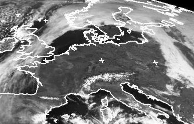 Hoch 'Maggi' lenkt alle Wolken weit um Deutschland herum. Von Spanien bis nach Polen zeigt sich kaum Bewölkung. Nur die schneebedeckten Alpen treten weiß hervor. (Bildquelle: NERC Satellite Receiving Station, Dundee University, Scotland, http://www.sat.dundee.ac.uk/)