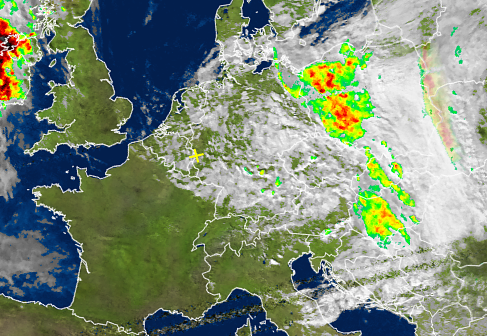 Über Deutschland liegt immer noch dichte Bewölkung des absziehenden Tiefs mit Schauern. Hoch "Peter" ist aber schon über der Nordsee und Skandinavien zu erkennen, auch über Frankreich. Es setzt sich jetzt kurzzeitig  in Deutschland durch.
