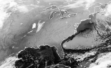 Ein ausgedehntes Hochdruckgebiet sorgt über den USA für meist wolkenfreies Wetter. An der Atlantikküste strömt kühle Luft nach Süden, dabei bilden sich dann über dem warmen Meer flache Wolken.