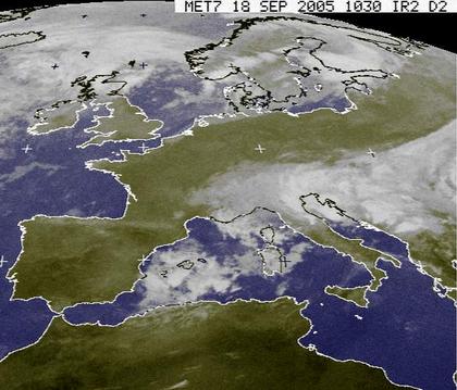 Europa lässt sich heute in drei Bereiche einteilen. Vom westlichen Mittelmeer bis zum Ural erstreckt sich ein Band mit Regen und Gewittern. Nördlich davon erstreckt sich eine Hochdruckbrücke, die für meist wolkenarmes Wetter sorgt. Über Schottland und Skandinavien wiederum bringen Tiefs gebietsweise Regen. Ein Ausläufer streift auch das deutsche Küstengebiet.