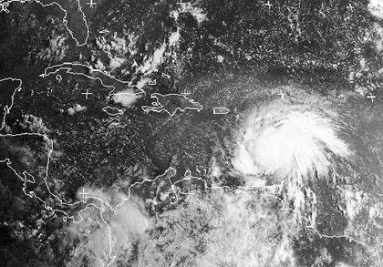 Über den Kleinen Antillen liegt am Freitagmorgen der neue Hurrikan 'Dean'. Er erreicht bereits mittlere Windgeschwindigkeiten von 160 km/h und zieht weiter nach Westen auf Jamaika zu. Dabei wird er sich noch verstärken. Zu Beginn der nächsten Woche könnte er Mexiko erreichen. (Bildquelle: NERC Satellite Receiving Station, Dundee University, Scotland, http://www.sat.dundee.ac.uk/)