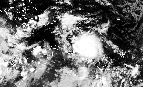 Über den kleinen Antillen erkennt man den Hurrikan Emily, der in die Karibik zieht. Voraussichtlich wird er dann auf die Küste Mittelamerikas zusteuern.