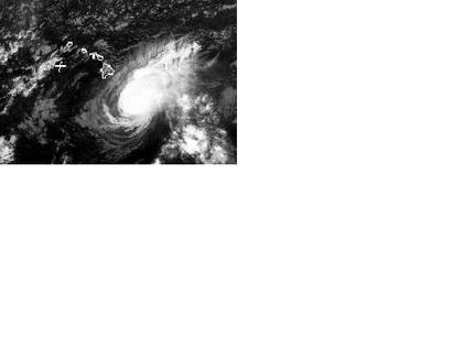 Auf dem Satellitenbild von Dienstag früh ist südöstlich von Hawaii der Hurrikan 'Flossie' zu erkennen. Zurzeit erreicht er mittlere Windgeschwindigkeiten von 194, in Böen 241 km/h. Berechnungen zufolge soll er südlich von Hawaii Richtung Nordwest ziehen, dennoch gelangt Hawaii in seinen Einflussbereich. (Bildquelle: NERC Satellite Receiving Station, Dundee University, Scotland, http://www.sat.dundee.ac.uk/)
