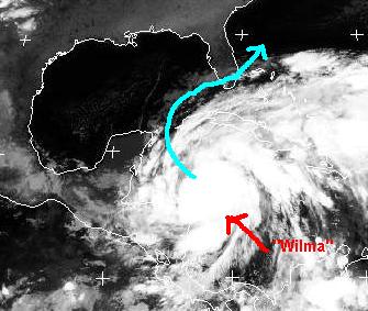 Der Hurrikan 'Wilma' südlich von Kuba erreicht zur Zeit Windgeschwindigkeiten von 175, in Böen 212 km/h. Berechnungen zufolge soll er aus der Karibischen See in den Golf von Mexiko und dann in Richtung Florida weiterziehen.