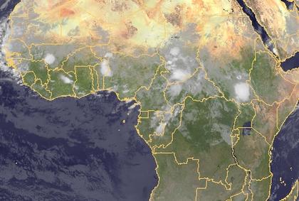 Über Afrika haben sich entlang des Äquators kräftige Schauer und Gewitter entwickelt. Die Zellen dieser konvektiven Systeme sind auf dem Satellitenbild deutlich zu sehen.