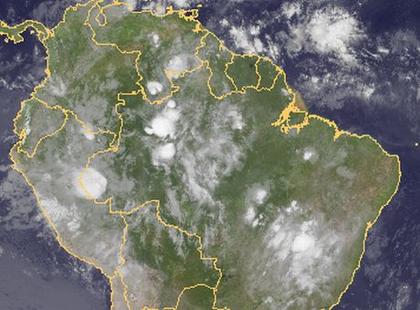 Über Brasilien haben sich kräftige Schauer und Gewitter entwickelt. Diese enstehen dort jahreszeitlich bedingt in Zusammenhang mit der innertropischen Konvergenzzone.