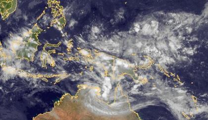 Auf dem Satellitenbild sind die Zellen kräftiger Schauer und Gewitter über Indonesien und Neuguinea erkennbar. Diese entstehen im Bereich der innertropischen Konvergenzzone.