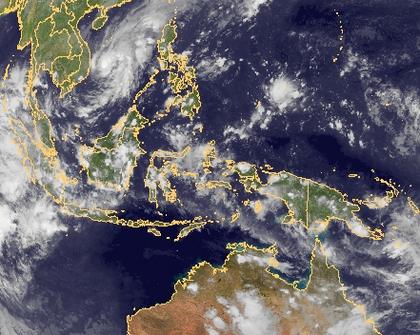 Kräftige Schauer und Gewitter über Indonsien und Neuguinea