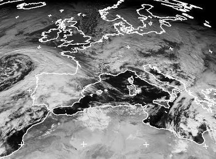 Ein Tiefdruckwirbel liegt derzeit auf dem Atlantik westlich von Spanien, ein weiterer über dem östlichen Mittelmeer. Beide sind jedoch für Mitteleuropa ohne Bedeutung. Hier strömt, auf der Rückseite des sich über Nordosteuropa auflösenden Tiefs 'Rosel', von Nordwesten weiter feuchte Meeresluft heran. Daher finden sich über Deutschland kaum Wolkenlücken.