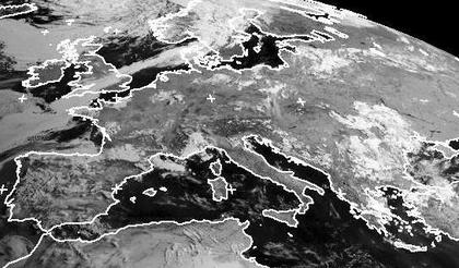 Auf dem Satellitenbild von Donnerstag früh sind vor allem über Mitteleuropa kaum Wolken zu erkennen. Im Laufe des Tages werden sich jedoch verbreitet wieder Quellwolken und teils kräftige Gewitter entwickeln. Das Wolkenband, das sich von Südengland über die Nordsee und Dänemark bis nach Skandinavien erstreckt, ist ein schwacher Ausläufer eines Tiefs im Nordmeer. Dieser Ausläufer wird sich im Laufe des Tages noch etwas nach Süden verlagern, und vor allem in der kommenden Nacht in Norddeutschland für Wolken sorgen.