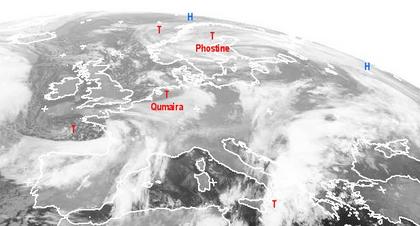 Auf dem Satellitenfoto von heute Morgen sind vor allem über West- und Nordeuropa mehrere Tiefausläufer zu erkennen, die heute für zahlreiche, teils längerandauernde Regen- und Schneefälle sorgen. Besonders dichte Wolken mit teils starken Schauern und einzelnen Gewittern gibt es allerdings vom äußersten Süden Italiens, über die Adria, nach Kroatien bis nach Rumänien. Auch an der Nordküste Afrikas von Algerien bis Libyen kommt es häufiger zu einzelnen Schauern und einzelnen Gewittern. Im östlichen Mittelmeerraum ist es aber überwiegend heiter und trocken.