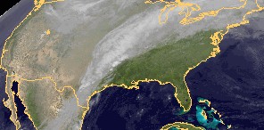 Auf dem Satellitenbild von heute Nachmittag zeigt sich ein ausgeprägtes Wolkenband vom südlichen Texas, über weite Teile des Mittleren Ostens bis hin zu den Neuenglandstaaten. In diesem Bereich kommt es vielerorts zu Regenfällen, zum Teil können dabei auch Starkregen oder gewittrige Regengüsse dabei sein. Nordwestlich und südöstlich dieses Regenbandes ist es in den USA überwiegend heiter und trocken.