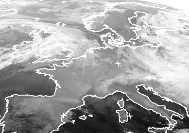 Über Osteuropa erkennt man viele Wolken. Sie gehören zum Tief 'Jolie', das langsam ostwärts abzieht. Über Ostfrankreich hat sich das Hoch 'Godelef' aufgebaut. Es hat die Wolken über Frankreich, den Westalpen und Teilen Deutschlands aufgelöst. Weiter im Norden zieht von Westen jedoch ein neues Wolkengebiet heran, das mit seinem Regen nach Norddeutschland zieht. Es gehört zum Frontensystem von Tief 'Hana' westlich der Britischen Inseln. (Bildquelle: NERC Satellite Receiving Station, Dundee University, Scotland, http://www.sat.dundee.ac.uk/)