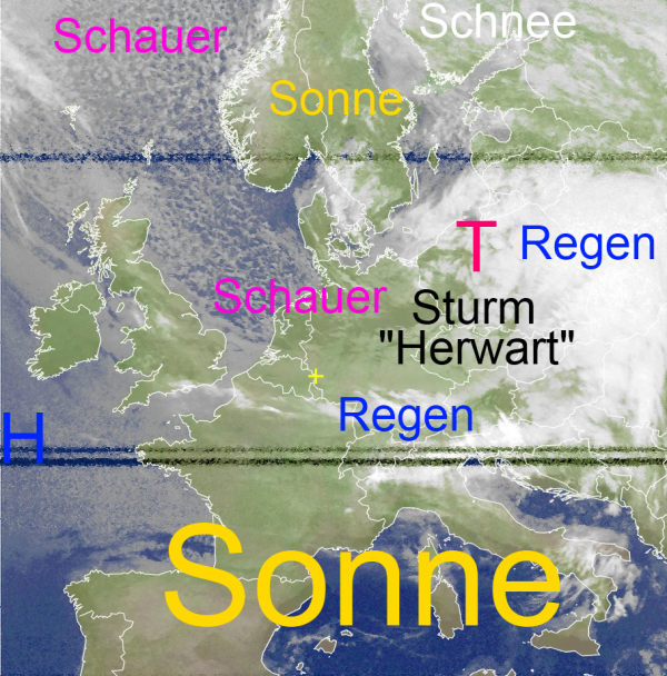 Mit Windgeschwindigkeiten von verbreitet 90 bis 130 Stundenkilometer brauste Herbststurm "HERWART" über Deutschland hinweg. Vor allem im Norden und Osten unseres Landes kam es zu Schäden. In Hamburg gab es eine schwere Sturmflut. In St.Pauli erreichte der Pegel an der Elbe 10,45 m.