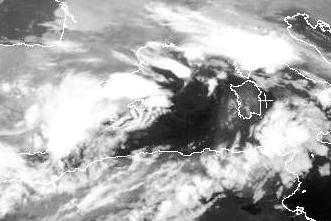 Auf dem Satellitenbild von Mittwochfrüh sind im westlichen und nördlichen Mittelmeer teils dichte Wolken zu erkennen aus denen sich einige hellweiße Flecken hervorheben. Diese Flecken sind hochreichende Wolken in denen sich heute zum Teil kräftige Schauer und Gewitter bilden.